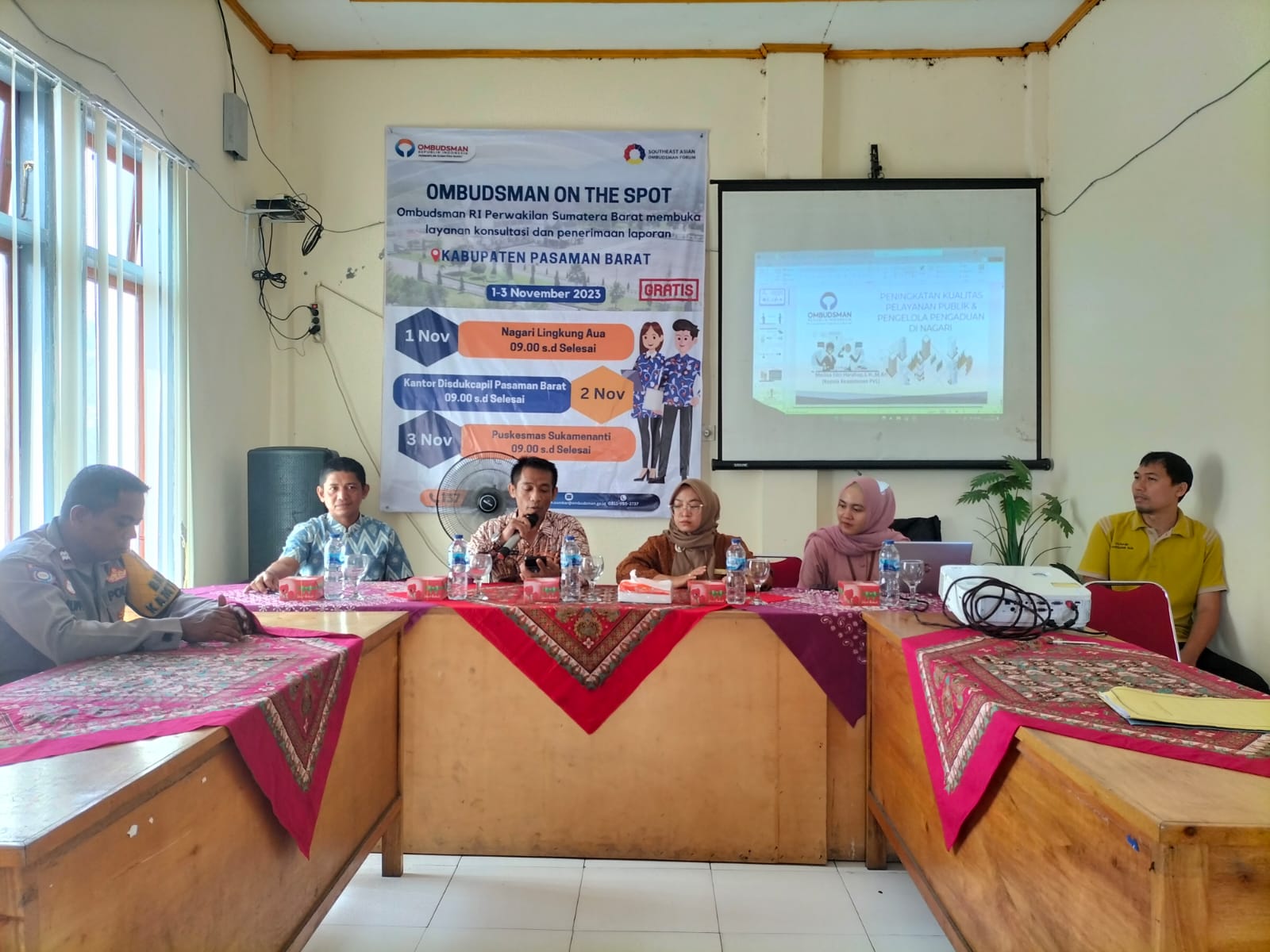 Pelaksanaan Kegiatan Ombudsman On The Spot di Kantor Wali Nagari Lingkuang Aua Kecamatan Pasaman Senin, 30 Oktober 2023